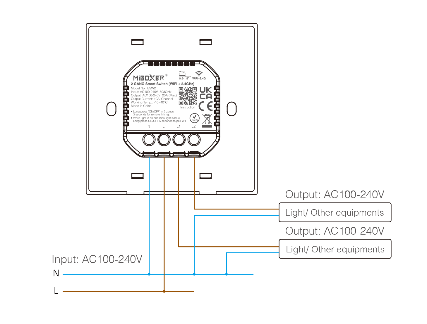 Product Name: 2 GANG Smart switch (WiFi + 2.4G)