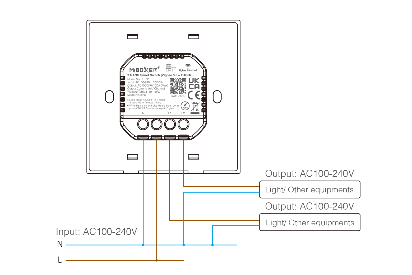 Product Name: 2 GANG Smart switch (Zigbee 3.0 + 2.4G)