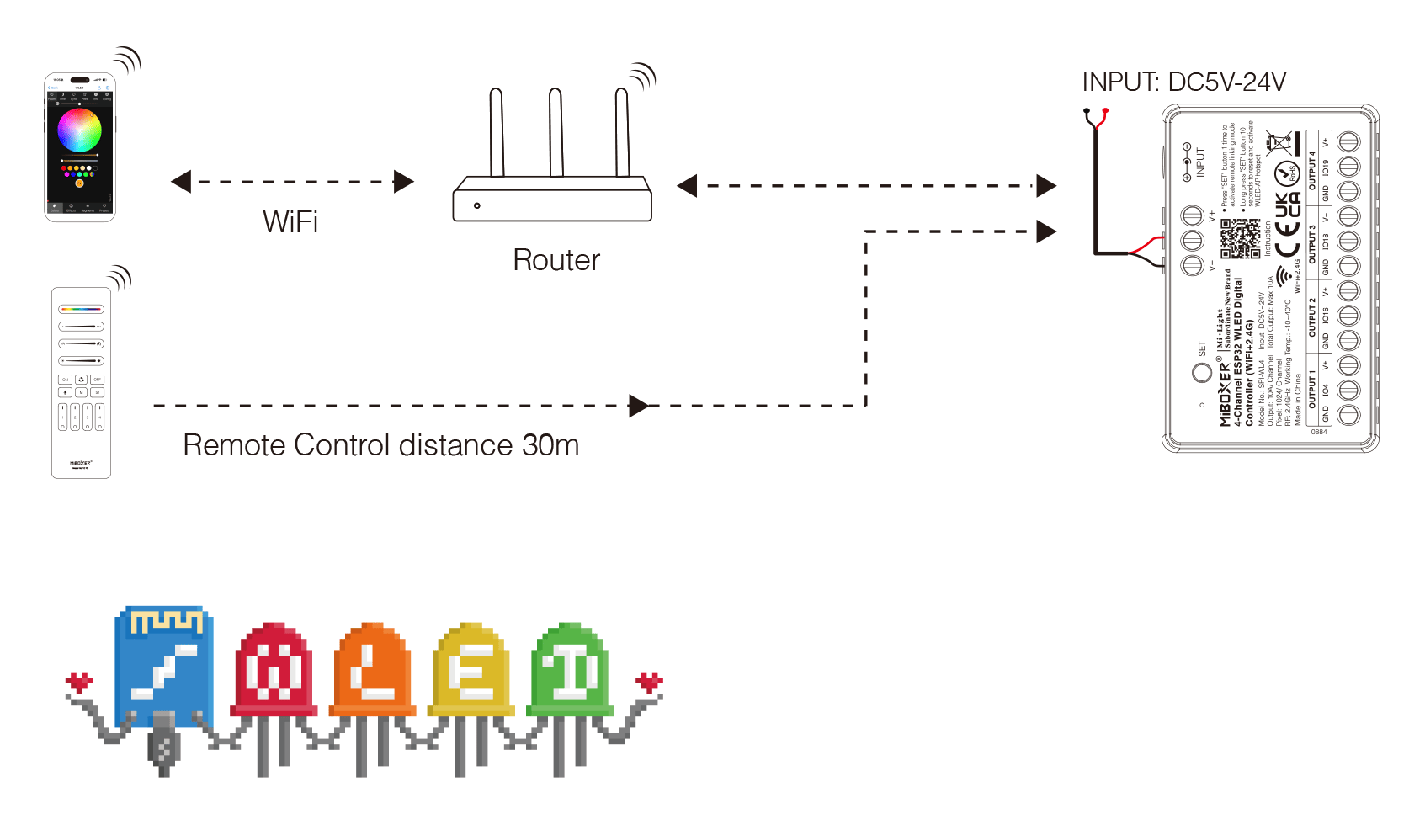 4-Channel ESP32 WLED Digital Controller (WiFi+2.4G)