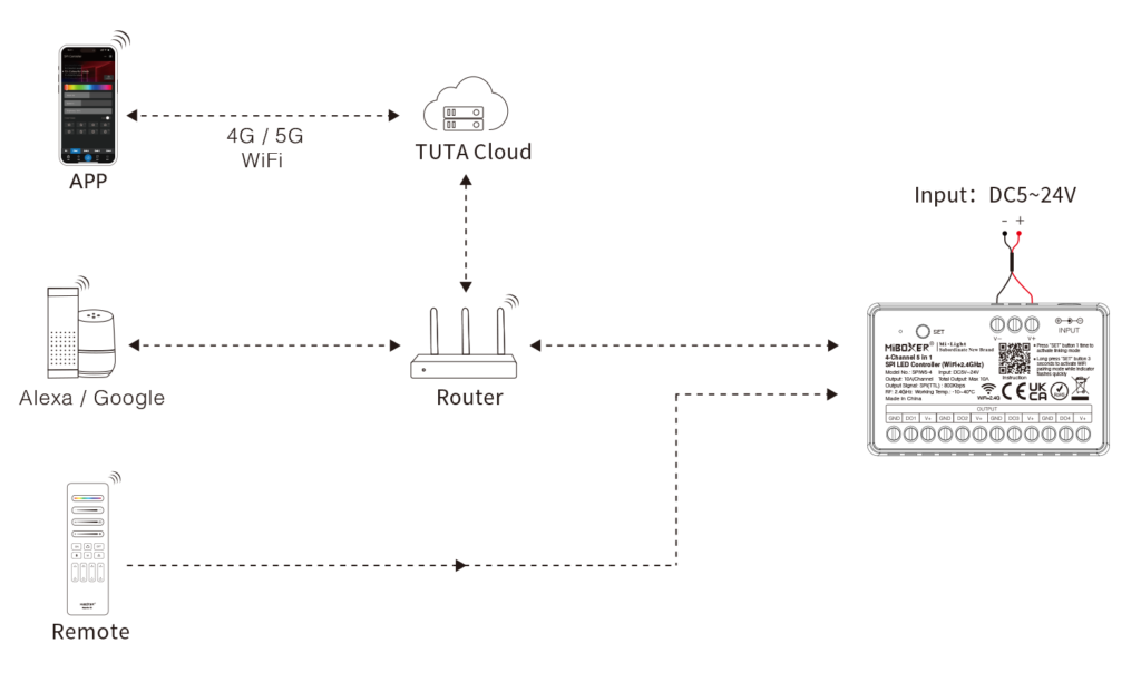 | Product Name: | 4-Channel 5 in 1 SPI LED Controller(WiFi+2.4G) |