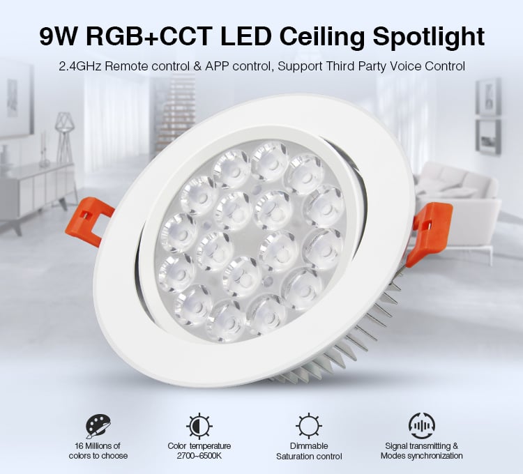 9W RGB+CCT LED Ceiling Spotlight
